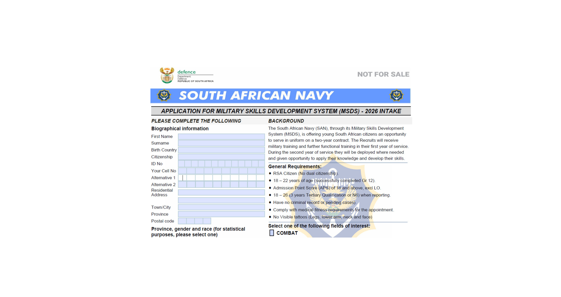 South African Navy Military Skills Development System (MSDS) Intake For 2026